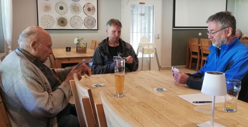 Immerhin durften sich die 7 Teilnehmer am besten Wetter erfreuen und konnten ihr Turnier auf der Terrasse des Clubhauses des VFR Bischweier austragen. Bei den sieben Teilnehmern gab es einen Tisch, an dem sich vier Kartenstrategen gegenüber saßen, der zweite Tisch beherbergte nur drei Spieler.