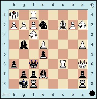 Dxh3+!! Marikova gab auf wegen 24.gxh3 Lf3+ 25.Kh2 Lf4 matt. 0:1.