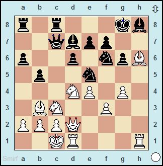 1.e4 c5 2.Sf3 d6 3.d4 cxd4 4.Sxd4 Sf6 5.Sc3 g6 6.Le3 Lg7 7.f3 0–0 8.Dd2 Sc6 9.Lc4 a6 10.0–0–0 Dc7? Den Zug fand bereits Rudolf Teschner 1965 in der „Deutschen Schachzeitung“ zweifelhaft. Sxd4 empfahl der Ehrengroßmeister, was heute von den Assen bevorzugt wird. 11.Lb3 Ld7 12.g4 In der scharfen Stellung kommt Weiß als Erster zum Angriff. Tfc8 Se5 13.h4 Tfe8 14.h5 Sc4 15.hxg6! Sxd2 gewinnt die Dame. Die weiße Stellung ist aber danach weit überlegen: 16.gxf7+ Kf8 17.fxe8D+ Txe8 18.Txd2 e6 19.g5 Sg8 20.Txh7 Turm, Figur und zwei Bauern sind stärker als die Dame. Hinzu kommt die wackelige Stellung der schwarzen Majestät. Auch 15…hxg6 reicht nicht: 16.Lxc4 Dxc4 17.Sf5! Lxf5 (gxf5? 18.gxf5 öffnet alle Linien. Der schwarze König überlebt das nicht mehr lange. Sh7 19.Tdg1 Sf8 20.Txg7+ Kxg7 21.Lh6+ Kg8 22.Lxf8 Kxf8 23.Dh6+ Kg8 24.Dh8 matt) 18.gxf5 b5 19.Lh6 Lh8 20.Dg2 Sd7 21.Le3 Lf6 22.fxg6 Sf8 23.gxf7+ Kxf7 24.Thg1 Tec8 25.Sd5 a5 26.c3 b4 27.Dg8+ Ke8 28.Lh6 Kd7 29.Sb6+. 13.h4 b5 14.h5 Se5?! b4 erweist sich als zäher. 15.Sd5 Sxd5 16.exd5 Sxd4 17.Lxd4 Lxd4 18.Dxd4 g5 (Dc5 19.Dd2 sorgt auf der h-Linie für die Entscheidung. a5 20.hxg6 hxg6 – oder fxg6 21.Dh6 Kf7 22.Dxh7+ Kf6 23.g5+ – 21.Dh6) 19.The1 Le8 20.f4 a5 21.fxg5 a4 22.h6 f6 23.gxf6 exf6 (axb3 24.f7+ Kxf7 25.Dg7 matt) 24.Lc4! Nun scheitert Dxc4 an 25.Txe8+ Kf7 26.Tf8+ Txf8 27.Dxc4. 15.hxg6 hxg6 16.Lh6 Lh8 17.Lf8! Ein sehr schöner Entscheidungszug. g5 Txf8 18.Sd5! Lenkt den Springer ab, der das Feld h7 deckt. Sxd5 19.Dh6 Lg7 20.Dh7 matt. 18.Dxg5+ Sg6 19.Dxg6+ und weil der f-Bauer gefesselt ist und nicht nehmen kann auf g6, streckte Dürr die Waffen. 1:0.